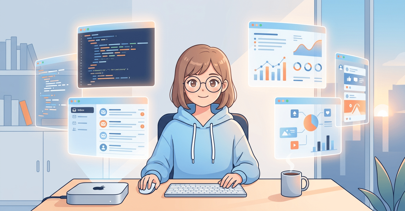 非エンジニアが実践できる10種類の業務自動化手法(レポート生成・会議メモ・データ分析・競合調査など)を解説。導入コストと効果の目安も記載。